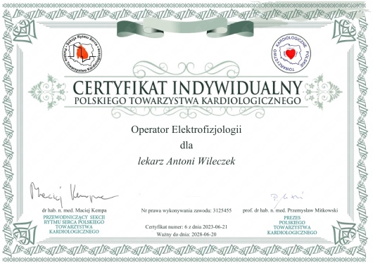 Posiadam doświadczenie w kwalifikacji i wykonywanywaniu nowatorskich zabiegów kardioneuroablacji - w zespole Prof. Sebastiana Steca.
