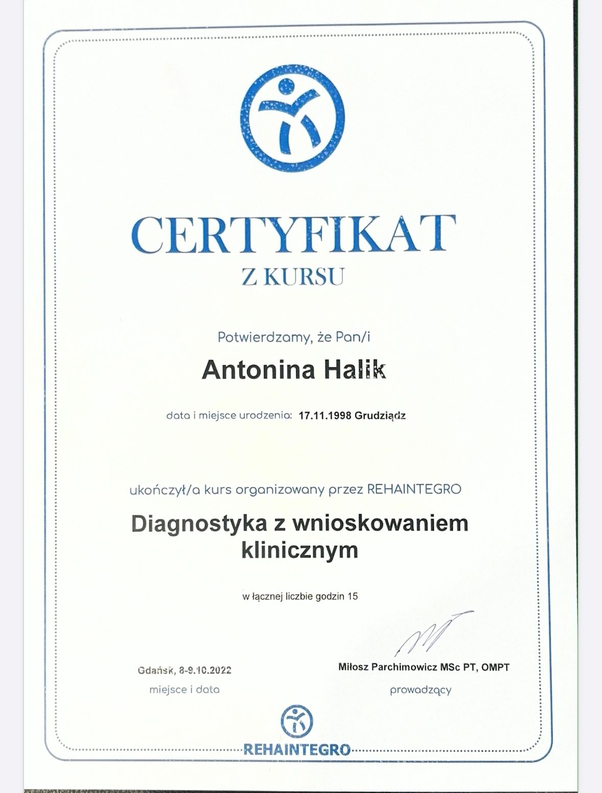 Bardzo polecam Panią Tosię. Mega profesjonalna rehabilitantka. 100%zaangażowania . Po paru wizytach czuję się dużo lepiej. Polecam.
