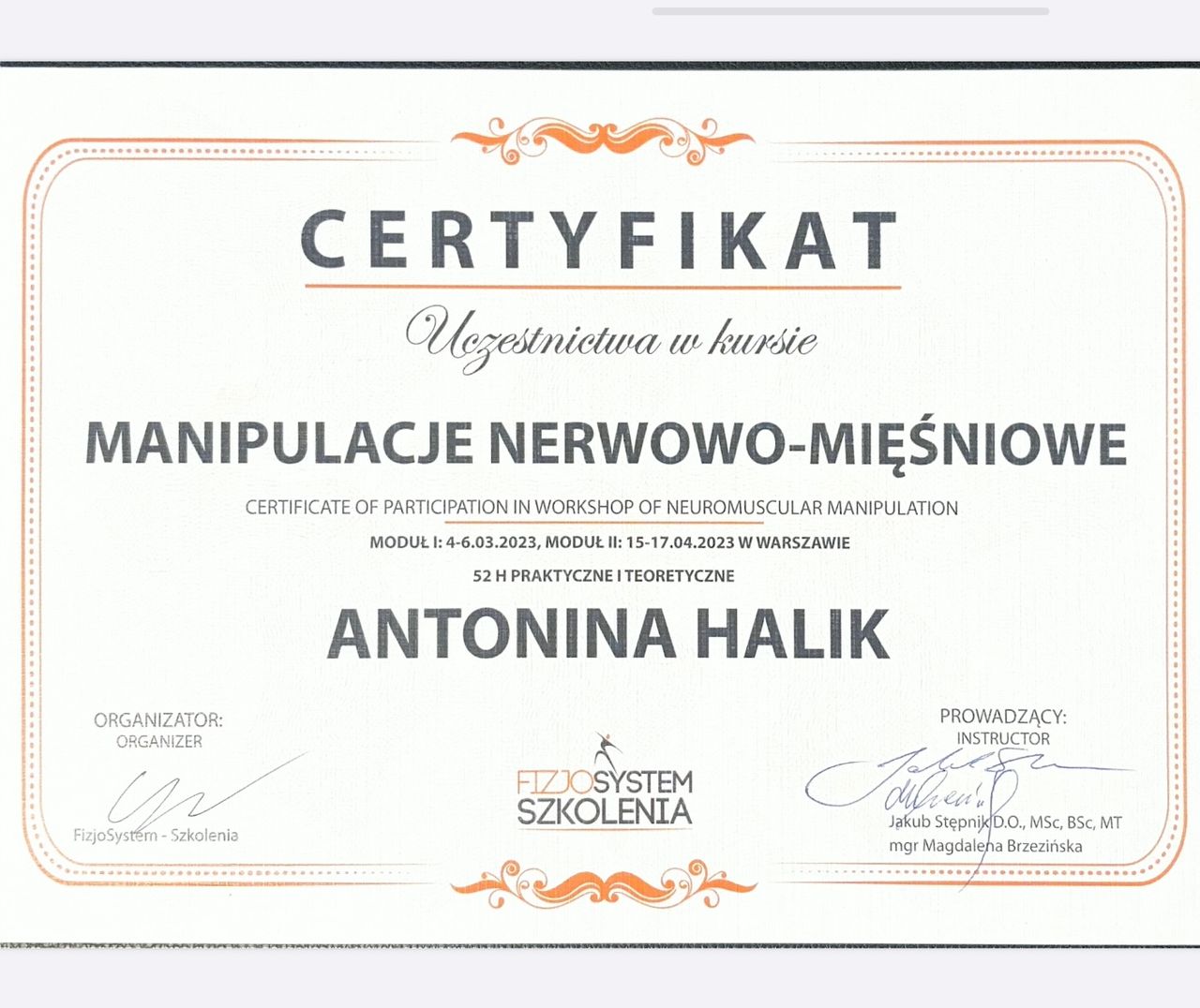 Manipulacje nerwowo-mięśniowe, 2 moduły FIZJOSYSTEM SZKOLENIA