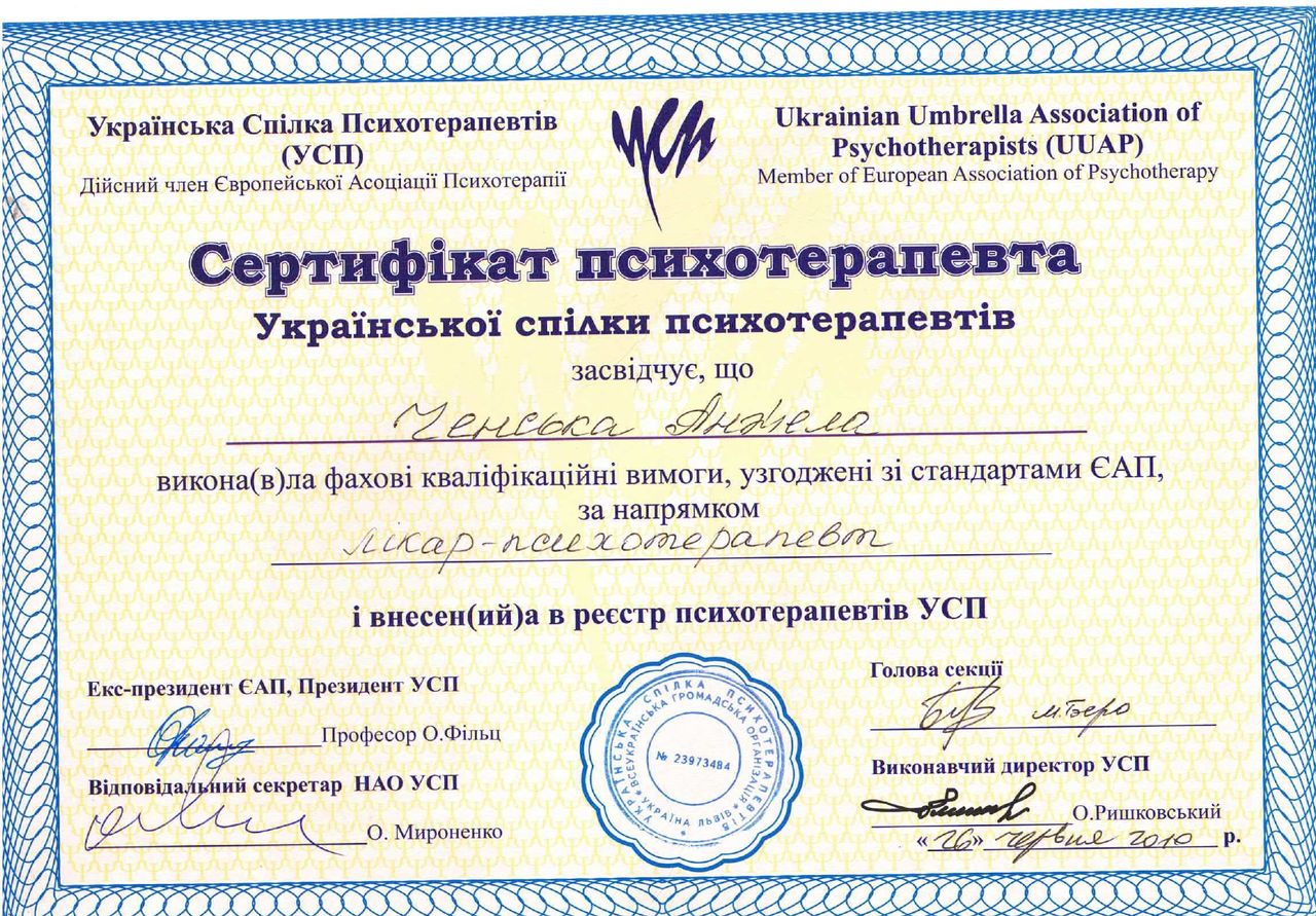 Закінчила медичний університет і пройшла спеціалізацію з психіатрії та психотерапії за межами ЄС. Маю понад 30 років досвіду роботи психотерапевтом. Приймаю дорослих пацієнтів (від 18 років). Працюю в інтегративному та психодинамічному підходах. Займаюся лікуванням депресії, тривожних розладів, розладів особистості та інших емоційних і психічних труднощів. Допомагаю людям у кризових станах, які переживають сильний стрес, пов’язаний із соматичним захворюванням або складною життєвою ситуацією.