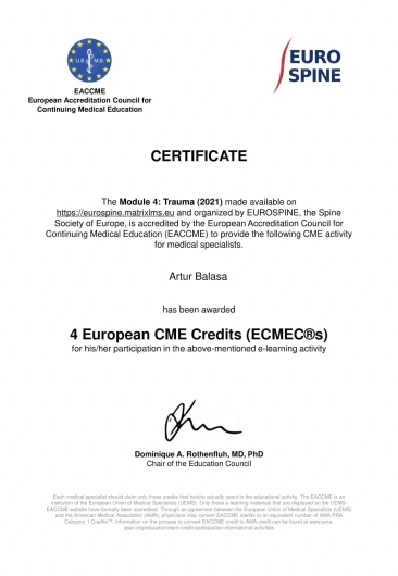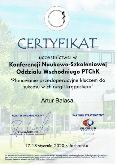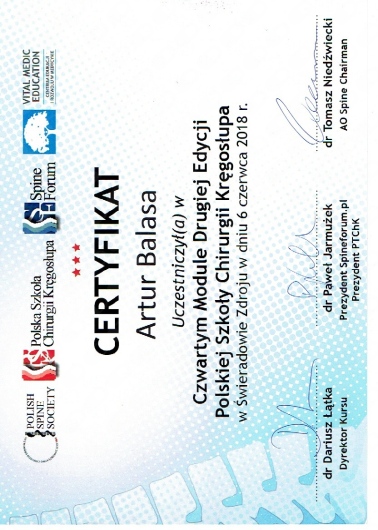 Serdecznie dziękuję doktorowi Arturowi Balasa za dokładną interpretację moich wyników badań, szczegółowe wyjaśnienia dotyczące dolegliwości, omówienie możliwych sposobów leczenia.