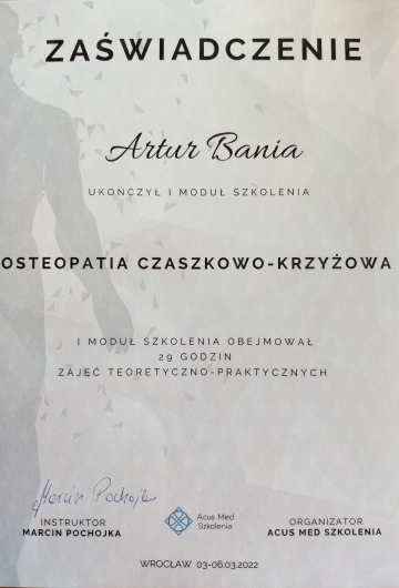 Posiadam tytuł Certyfikowanego Terapeuty Czaszkowo-Krzyżowego.
