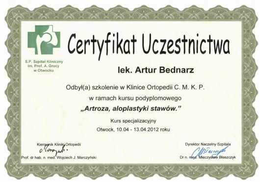 Jaki jest zakres porad oferowanych przez Artur Bednarz?Artur Bednarz to ortopeda. Na podstawie swojego doświadczenia i wykształcenia Artur Bednarz oferuje usługi takie jak: artroskopia, alloplastyka, artroskopowa operacja łąkotki, konsultacja ortopedyczna + USG, iniekcje dostawowe, konsultacja ortopedyczna, USG narządu ruchu, konsultacja ortopedyczna (pierwsza wizyta), konsultacja ortopedyczna (kolejna wizyta), badania diagnostyczne.