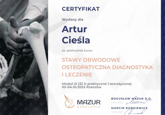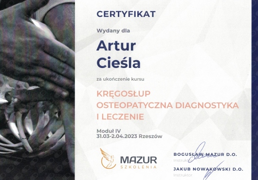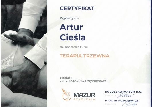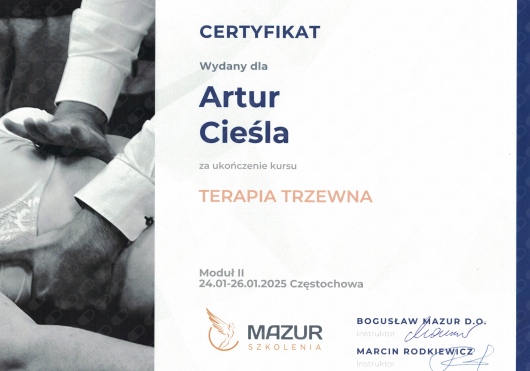 Jaki jest zakres porad oferowanych przez Artur Cieśla?Artur Cieśla to fizjoterapeuta. Na podstawie swojego doświadczenia i wykształcenia Artur Cieśla oferuje usługi takie jak: konsultacja fizjoterapeutyczna.