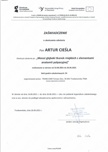 U Pana Artura leczę już kolejną kontuzję i z czystym sumieniem mogę go polecić. Jest specjalistą w swoim fachu, szybko lokalizuje źródło problemu i skutecznie go usuwa. W moim przypadku był to problem z bólem barków, bólem kolana i kontuzją mięsni pośladkowych. Każdy z opisanych przypadków został wyleczony.