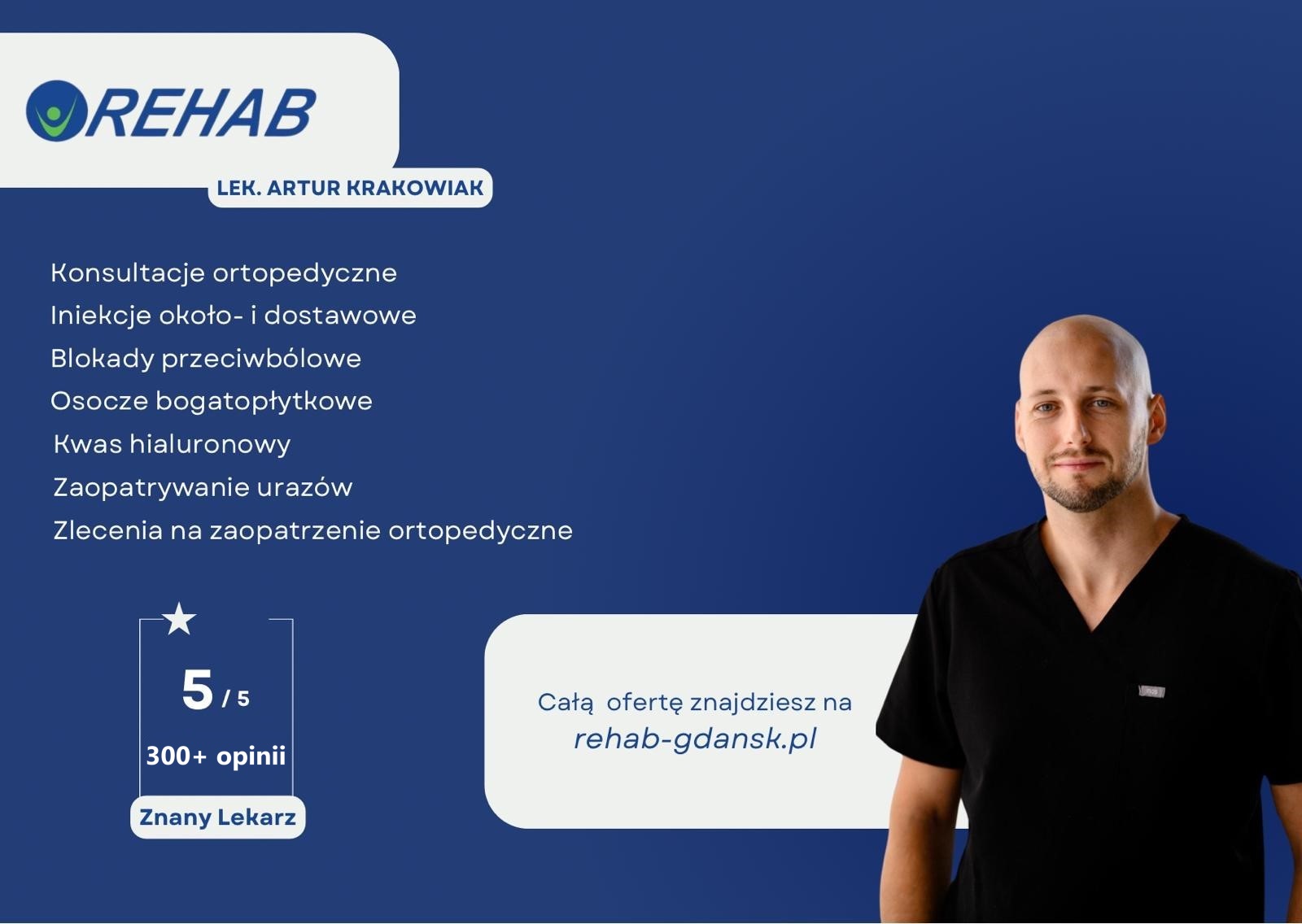 Jeśli ktoś się waha nad wyborem ortopedy, to zdecydowanie mogę polecić dr Krakowiaka. Dr poświęca pacjentowi odpowiednią ilość czasu, wszystko wyjaśnia, bardzo dokładnie bada, daje dużo cennych wskazówek i rad. Do tego jest miły i przyjazny. Lekarz na mocne 5. Dodatkowym atutem jest lokalizacja gabinetu, dużo miejsc parkingowych i różne możliwości dojazdu. Jeśli ktoś jest przed pierwszą blokadą jak ja, to mogę dopowiedzieć, że nie ma się czego bać, lekarz ma potrzebne leki w gabinecie, podanie leku jest chwilowe, a po nim nic złego się nie dzieje, można prowadzić samochód itd.