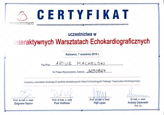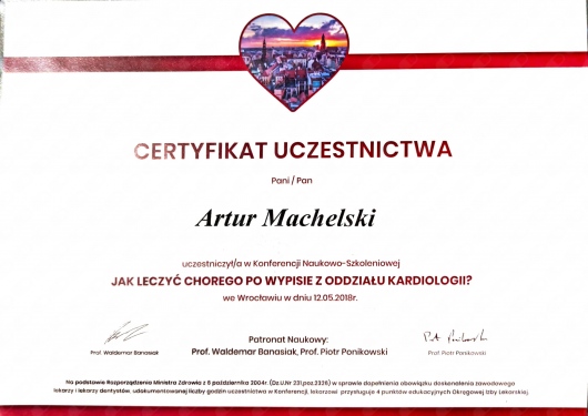 Jaki jest zakres porad oferowanych przez Artur Machelski?Artur Machelski to kardiolog. Na podstawie swojego doświadczenia i wykształcenia Artur Machelski oferuje usługi takie jak: EKG - elektrokardiografia, konsultacja kardiologiczna + EKG, konsultacja online, konsultacja kardiologiczna.