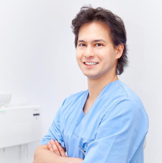 W klinice zajmuje się leczeniem implantoprotetycznym, rekonstrukcjami kostnymi i pełnołukowymi oraz chirurgią periodontologiczną.