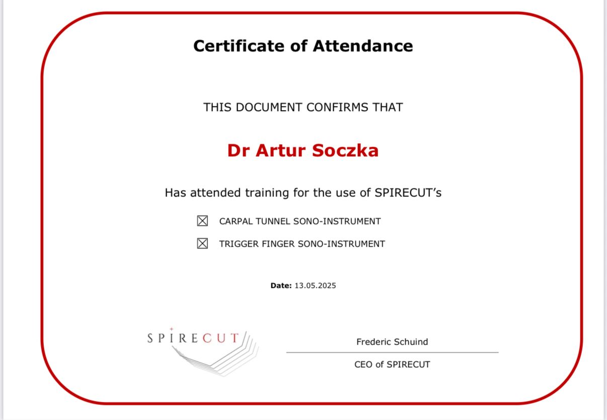 Jaki jest zakres porad oferowanych przez Artur Soczka?Artur Soczka to ortopeda. Na podstawie swojego doświadczenia i wykształcenia Artur Soczka oferuje usługi takie jak: kwalifikacja do operacji, operacja palca strzelającego, konsultacja ortopedyczna, operacja zespołu cieśni nadgarstka, blokady przeciwbólowe, badanie układu ruchu, iniekcje dostawowe, Osocze bogatopłytkowe, Kwas hialuronowy, konsultacja chirurga ręki.