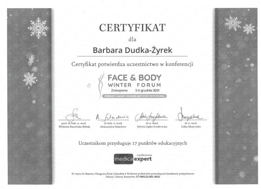Czy Barbara Dudka-Żyrek przyjmuje online, bez konieczności pojawiania się w placówce?Nie, w tym momencie Barbara Dudka-Żyrek nie oferuje konsultacji online.