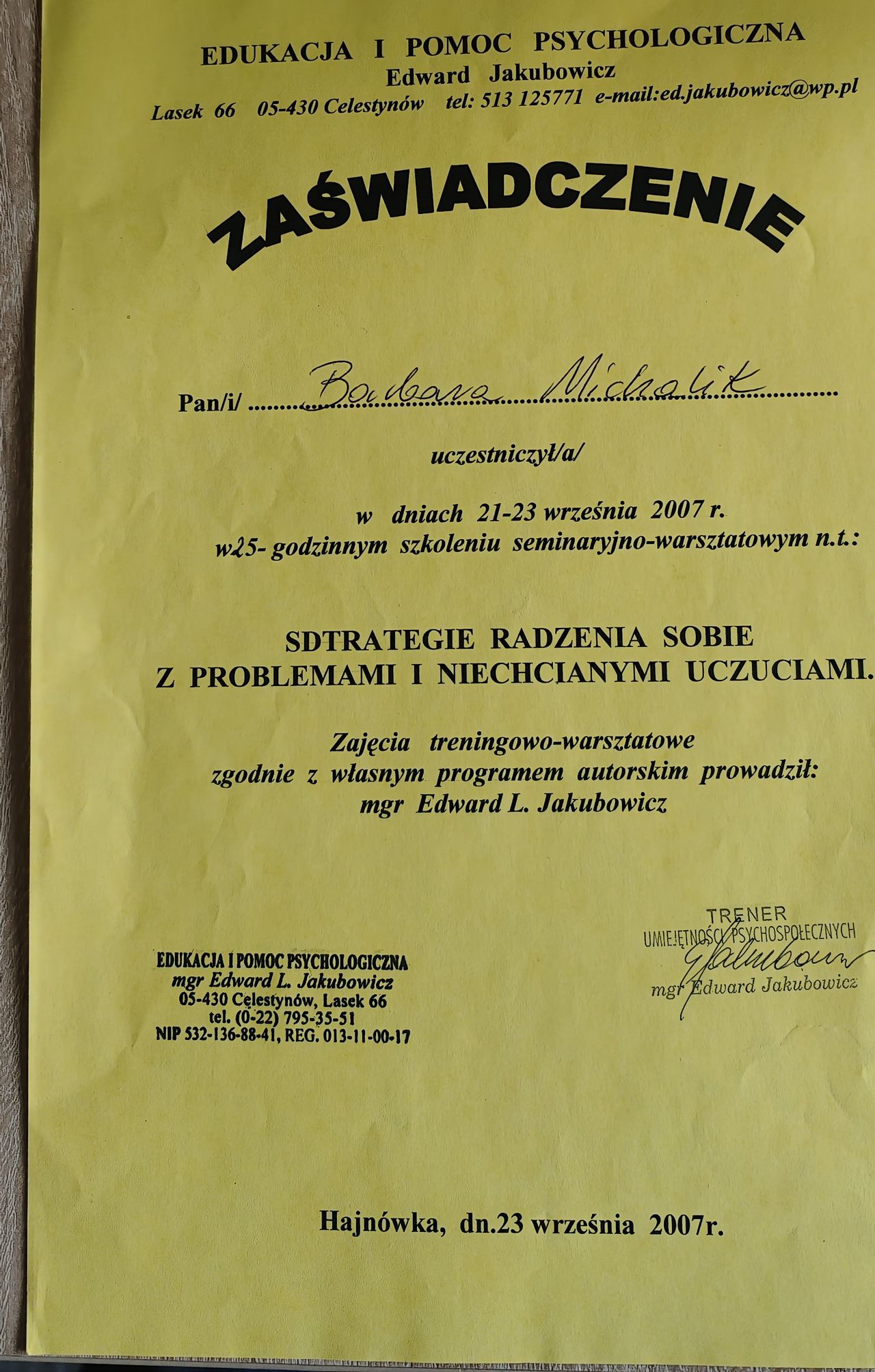 Podsumowując - żałuję że tak późno znalazłem odpowiedniego terapeutę, ale ogromnie się cieszę, że końcu trafiłem na odpowiedniego.