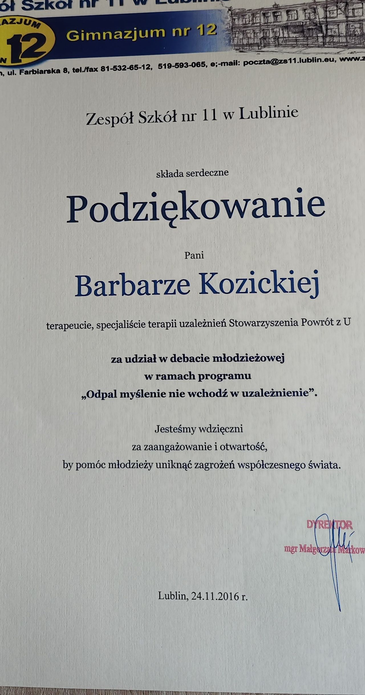 Jestem pedagożką, specjalistką psychoterapii uzależnień, psychoterapeutką.