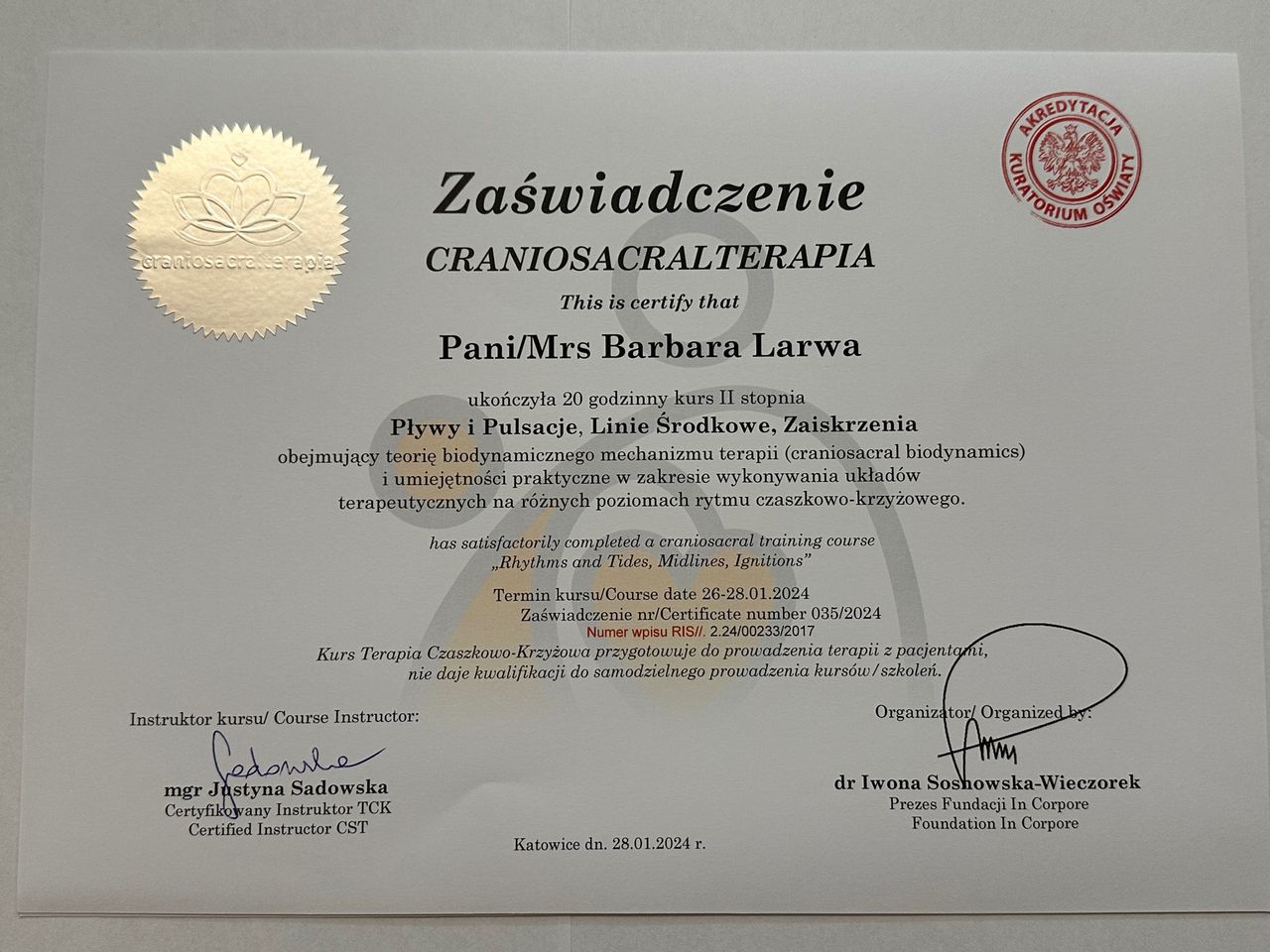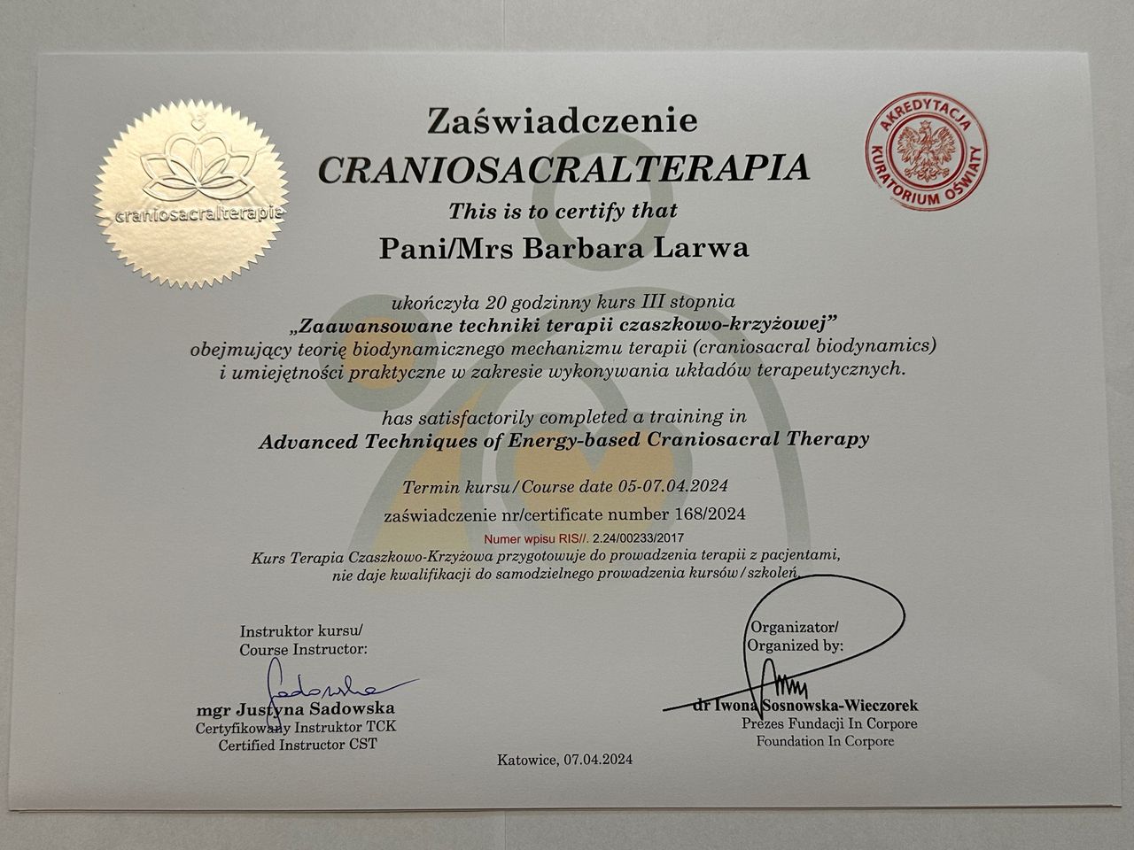 Z całego serca mogę polecić!• Krakowskie Centrum Fizjoterapii i Osteopatii Osteohelp • fizjoterapia uroginekologiczna •