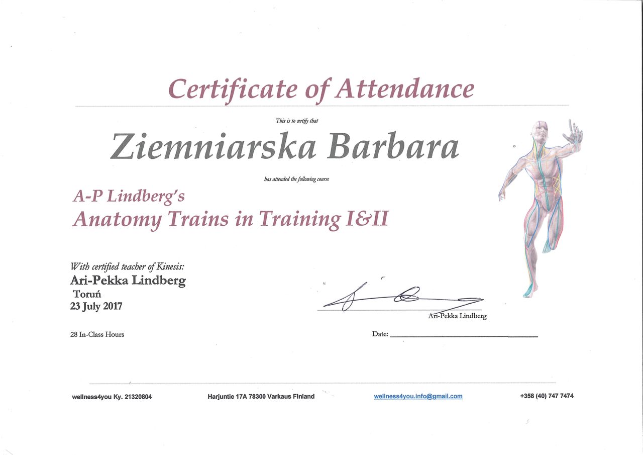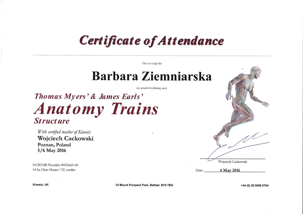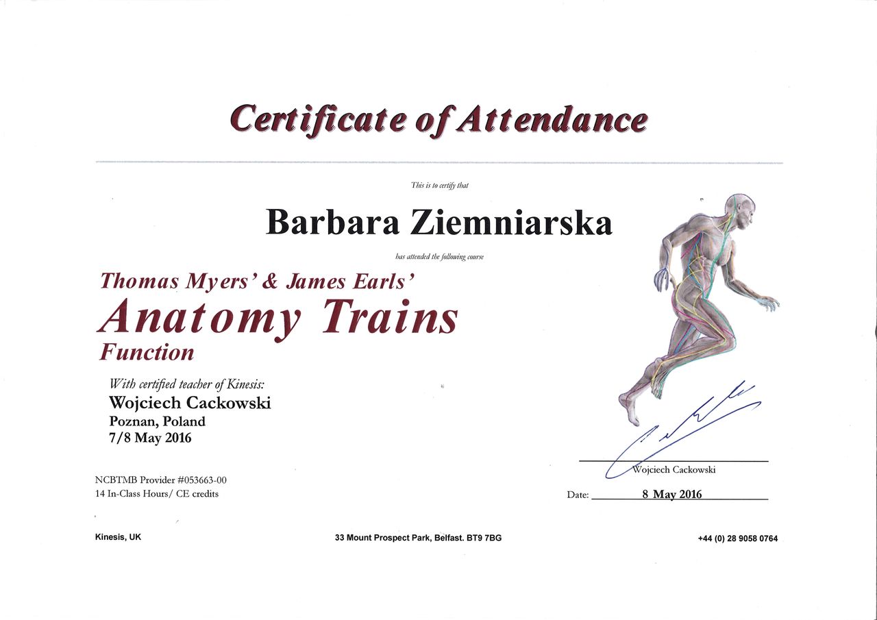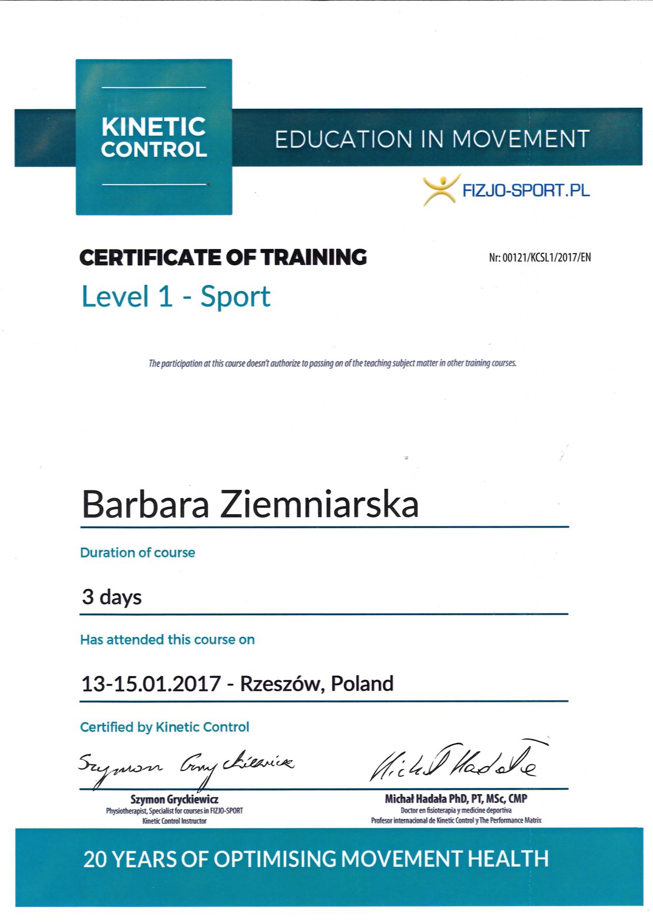 Dzięki licznym szkoleniom z zakresu nowoczesnych metod terapii manualnej i terapii ruchem nieustannie poszerza swoją wiedzę. Uczestniczy w licznych krajowych i zagranicznych kursach i stażach z zakresu rehabilitacji m.in. Ev. Krankenhauses Hagen-Haspe, Niemcy. W 2017r. była fizjoterapeutką kadry polski kadetek piłki siatkowej podczas mistrzostw świata w Rosario, Argentyna.