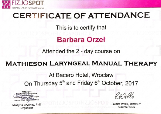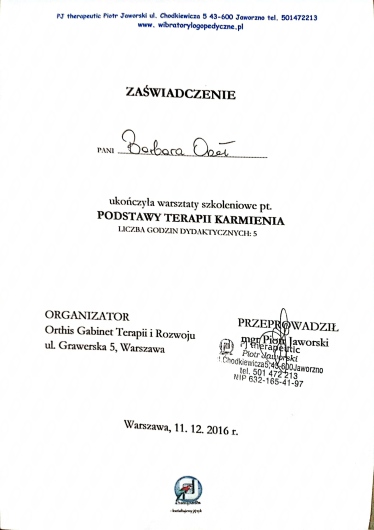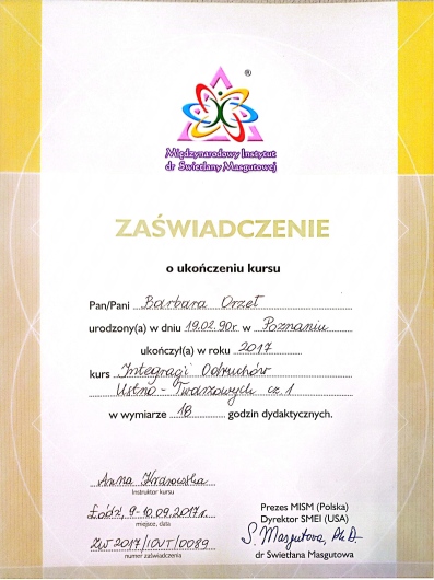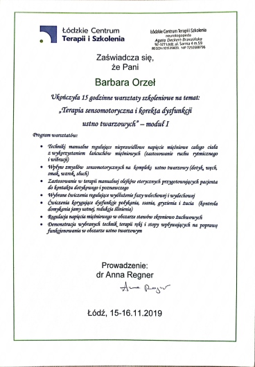 Miałam przyjemność korzystać z pomocy Pani Basi Orzeł i jestem ogromnie wdzięczna za jej profesjonalizm oraz empatię. Wizyty przebiegały w bardzo przyjemnej i komfortowej atmosferze. Masaże były niezwykle relaksujące i przyniosły mi ogromną ulgę – ból oraz napięcie w mięśniu twarzy ustąpiły całkowicie. Dodatkowo Pani Basia przygotowała dla mnie zestaw ćwiczeń do wykonywania w domu, które okazały się niezwykle skuteczne. Już po krótkim czasie wszystkie dolegliwości minęły, dosłownie jak ręką odjął. Serdecznie polecam współpracę z Panią Basią każdemu, kto potrzebuje fachowej, a jednocześnie pełnej ciepła pomocy logopedycznej.