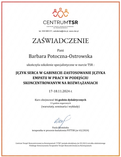 Odpowiednia osoba na odpowiednim miejscu, zdecydowanie warto wybrać Panią Barbarę. Ujmuje mnie Pani spokój, empatia i profesjonalizm.
