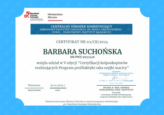 Nie ma skali aby ocenić Panią Doktor Suchońską. Z wielką odpowiedzialnością mogę napisać, że Pani doktor uratowała mi życie. Cudowny człowiek i wspaniały lekarz. Jestem ogromnie wdzieczna losowi, że trafiłam właśnie do dr. Suchońskiej! Każda wizyta przebiega w milej atmosferze. Pani dr.zawsze dokladnie wszystko wyjaśnia co robi i jakie proponuje leczenie. Serdecznie dziękuję za każdą pomoc, radę i życie...