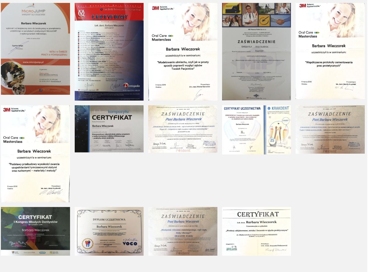 Uczestniczka kursów, szkoleń, konferencji ogólnopolskich i międzynarodowych doskonalących umiejętności z zakresu stomatologii zachowawczej, estetycznej i endodoncji.