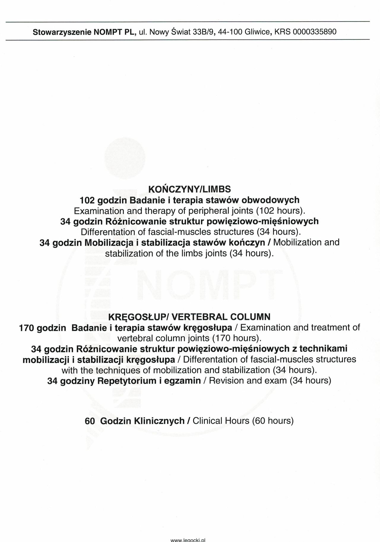 Terapia Manualna według standardów IFOMPT (moduły EB, E II, E III, EM, KI, KII, KIII, KIV, KM + egzamin na Certyfikowanego Terapeutę MTI),