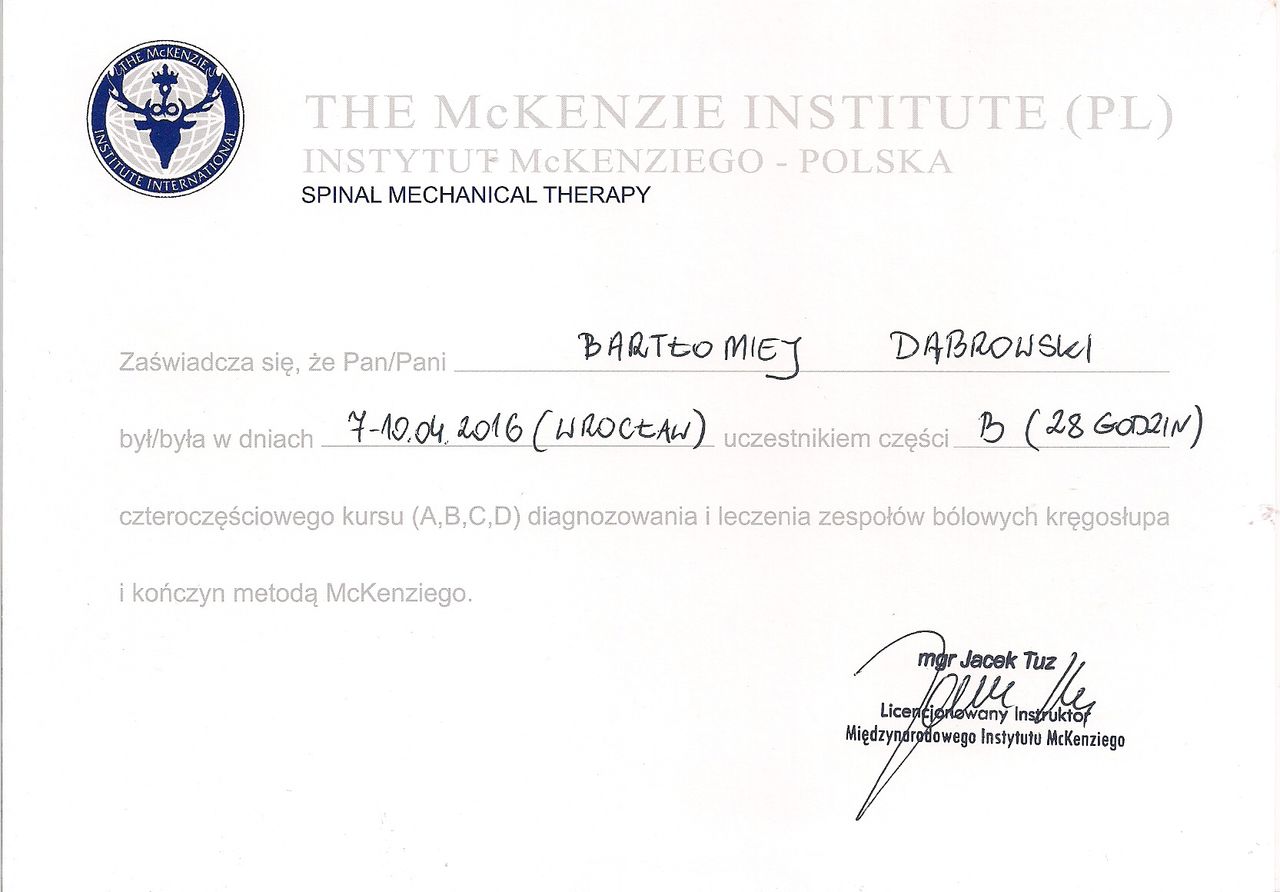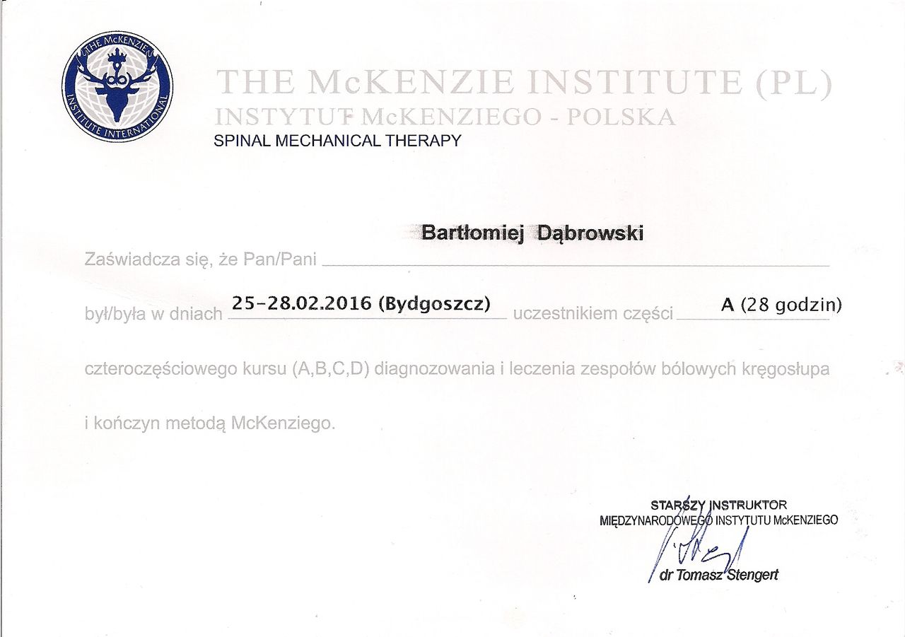 Metoda diagnozowania i leczenia zespołów bólowych kręgosłupa i kończyn metodą McKenziego (moduły A, B, C, D),