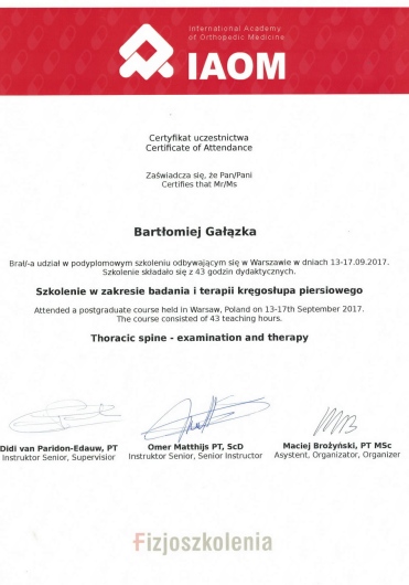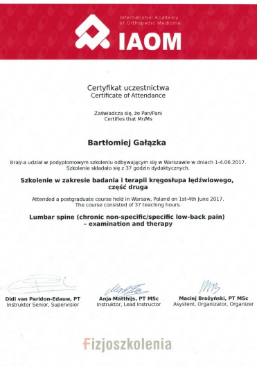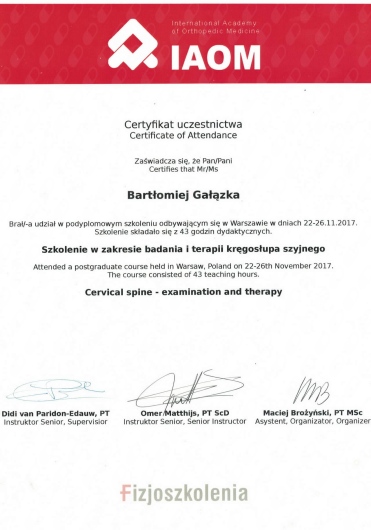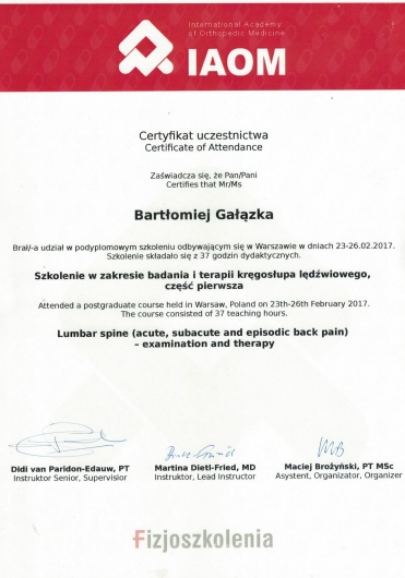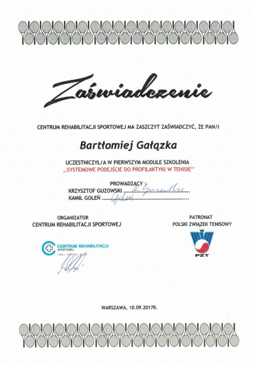 Szczerze polecam Bartka Gałązkę, fizjoterapeutę ze Strefy Zdrowia Wilanów. Trafiłam do niego z polecenia, pomógł wielu moim znajomym. Sama byłam kilka razy i za każdym razem mi pomógł i wyciągnął z trudnych sytuacji (problemy z kręgosłupem lędźwiowym oraz z przedramieniem). Korzystałam z masaży leczniczych oraz ze specjalnych ćwiczeń, zawsze dobieranych indywidualnie do potrzeby. Poza umiejętnościami i wiedzą, jakie posiada, jest również bardzo miłym i empatycznym człowiekiem i zawsze z wielkim zaangażowaniem podchodzi do każdego pacjenta. Naprawdę polecam tego specjalistę.