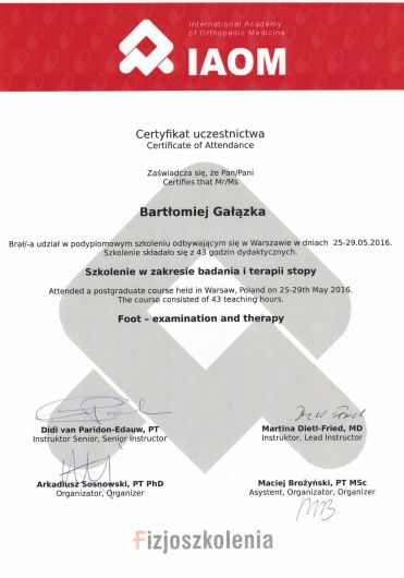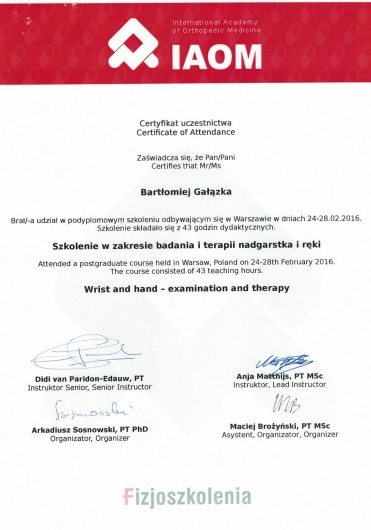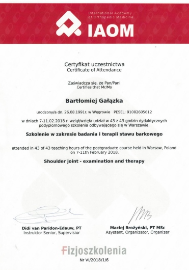 Pan Bartek wykazał się profesjonalnym podejściem w przywróceniu mojego kolana do sprawności po operacji. Dodatkowo przekazał mi dużo wiedzy odnośnie ćwiczeń i profilaktyki w kolejnych etapach powrotu do pełni sił i pełni sprawności.