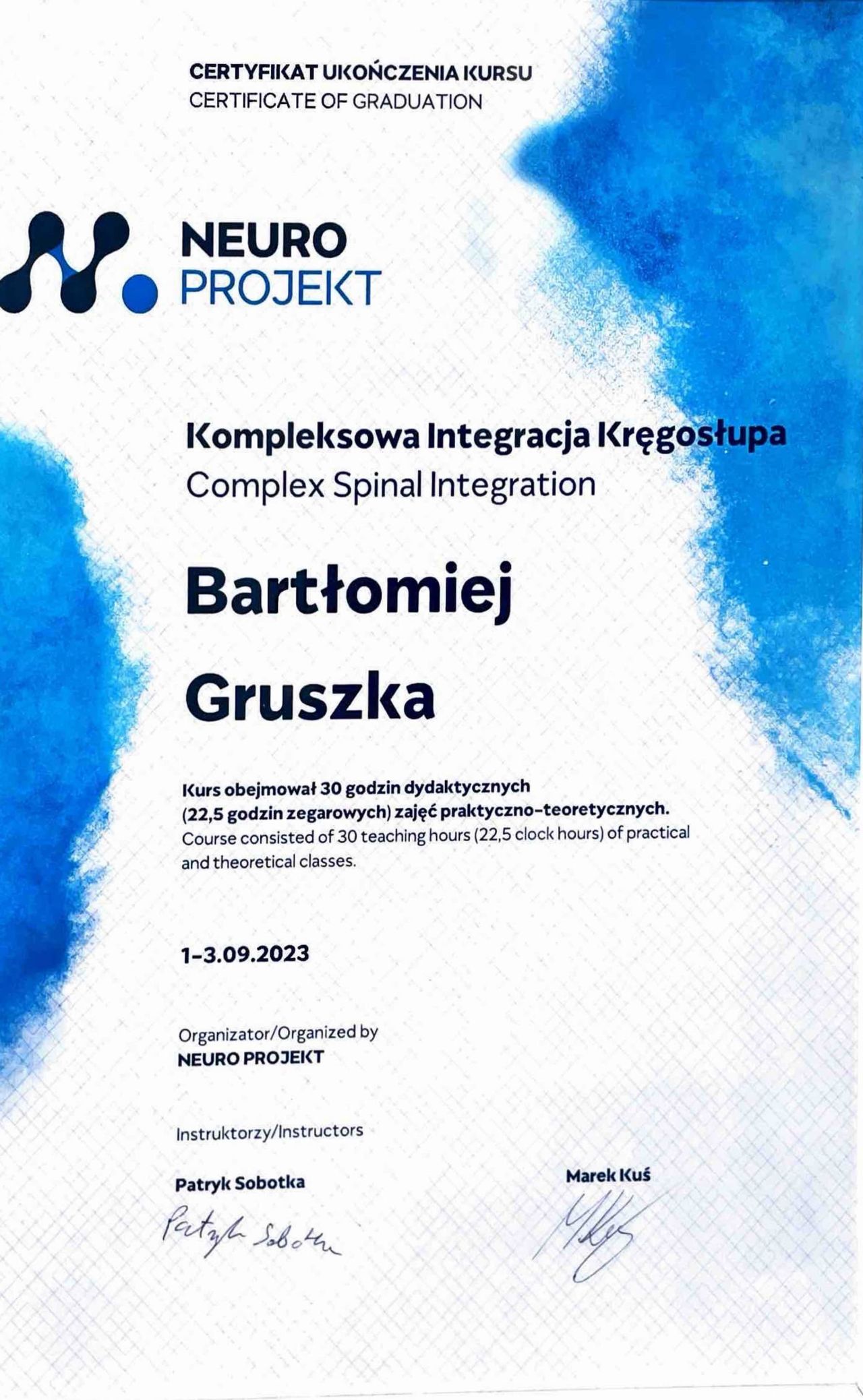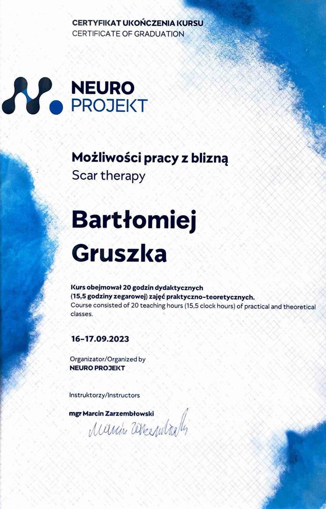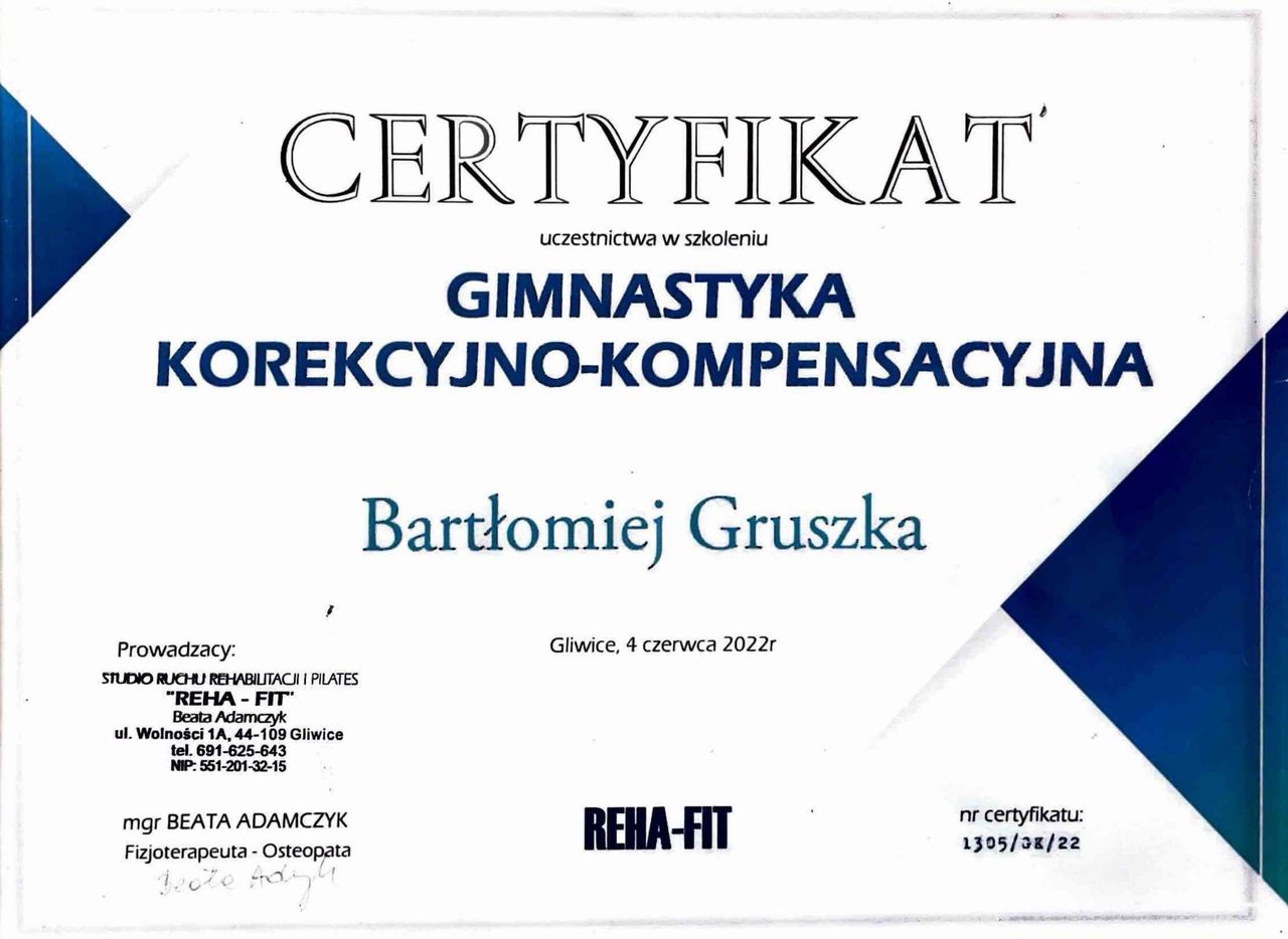 Pragnę z pełnym przekonaniem zarekomendować fizjoterapeutę Pana Bartłomieja Gruszkę, który mimo młodego wieku wykazuje się ogromnym doświadczeniem oraz łatwo nawiązuje relację z pacjentem.Uważnie wsłuchuje się, przeprowadzając dokładny wywiad i konsekwentnie dąży do zrealizowania ustalonych z pacjentem celów.Juz samo podejście, empatia,miła rozmowa sprawia,że pacjent odzyskuje wiarę w powrót do sprawności.