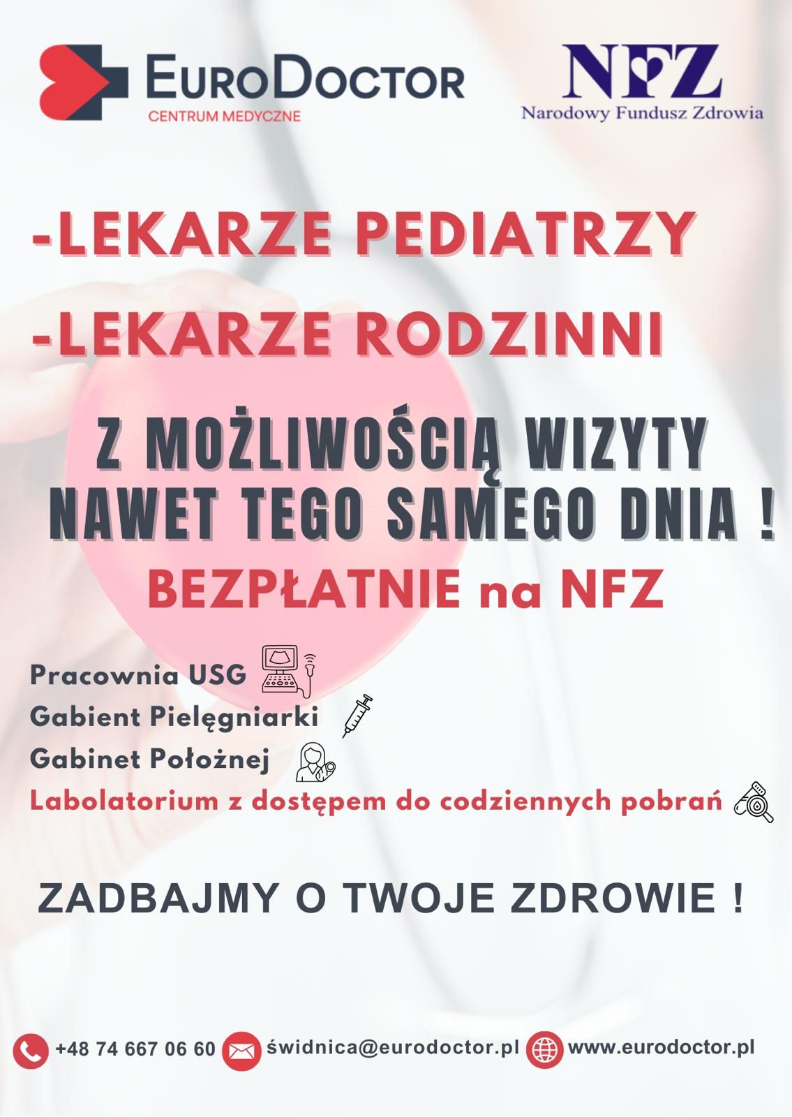 Lekarze pediatrzy i lekarze rodzinni na NFZ z krótkimi terminami. Zapraszamy do umawiania wizyt