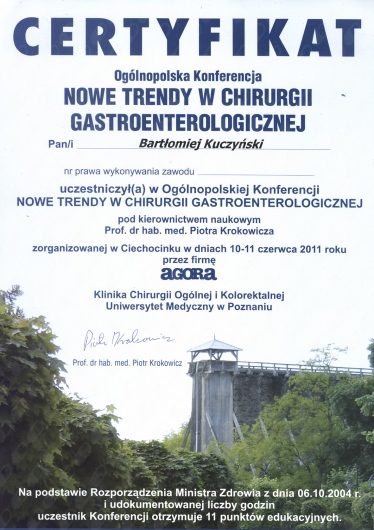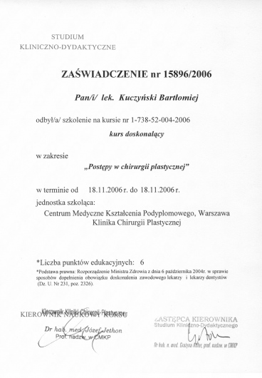 Szlify chirurgiczne uzyskiwał m.in. w Szpitalu Wojewódzkim w Poznaniu, Szpitalu Chirurgii Plastycznej w Polanicy Zdroju.
