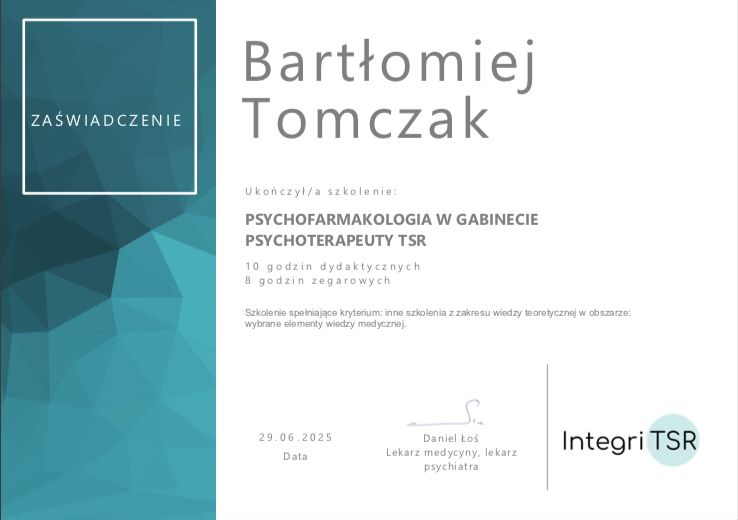 Polecam z całego serca, mój partner miał pierwszy raz styczność z terapią i naprawdę jeśli on uważa że Bartek jest spoko i generalnie poleca to naprawdę polecam!