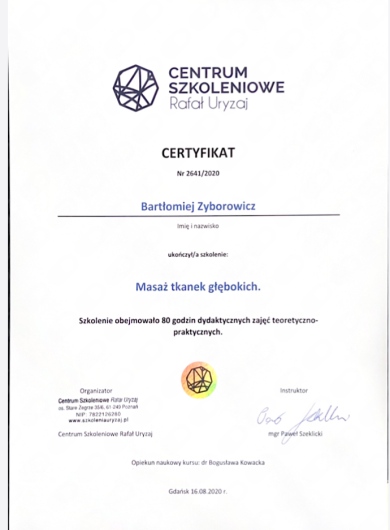 Bartek pomógł mi rozluźnić pospinane mięśnie w okolicy prawego biodra i mięśnia czworogłowego za pomocą delikatnegomasażu a następnie nakłuwania igłami, wcześniej podczas biegu czułem drętwienie w prawej nodze, które coraz bardziej się pogarszało i uniemożliwiało w pełni realizowania swoich treningów. Bartek szybko znalazł dla mnie czas, wysłuchał tego jak ja to odczuwam, sam wybadał gdzie i co jest pospinane, a na koniec skutecznie pomógł informując też o tym co robi. Zaraz po wizycie czułem, że napięcie minęło, a po dwóch dniach jak całkowicie zszedł ból po igłach biegało się bardzo przyjemnie. Bardzo profesjonalny, miły, zaangażowany. Zdecydowanie polecam.