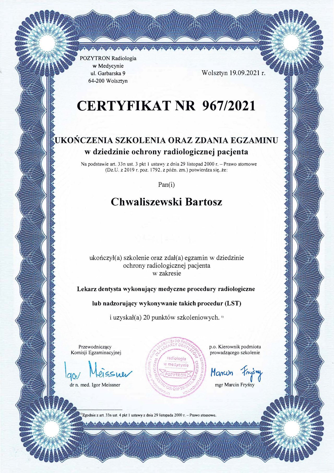 lek. dent. Bartosz Chwaliszewski