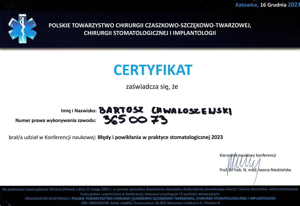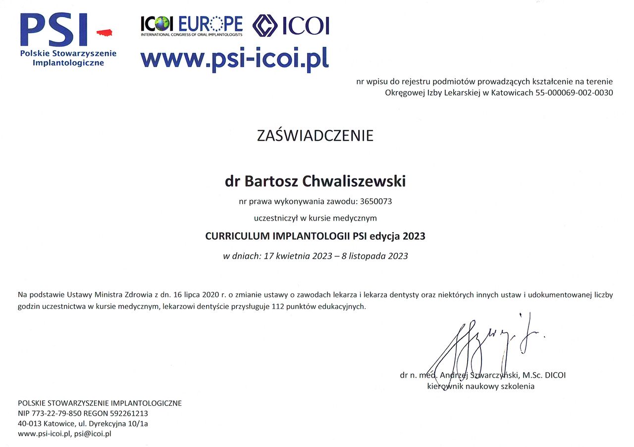 • Indywidualna Praktyka Stomatologiczna lek. dent. Bartosz Chwaliszewski • chirurgia stomatologiczna •