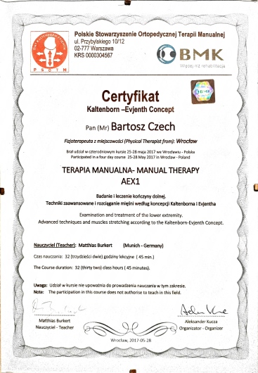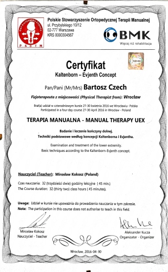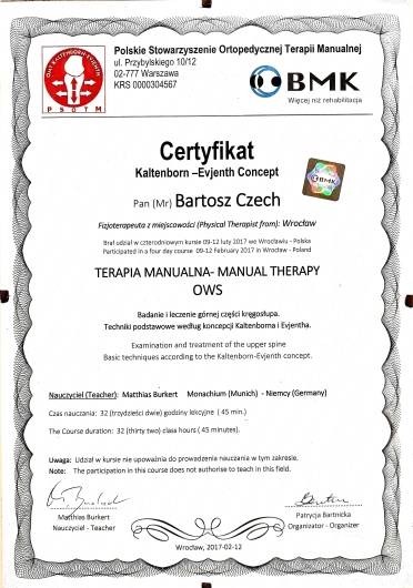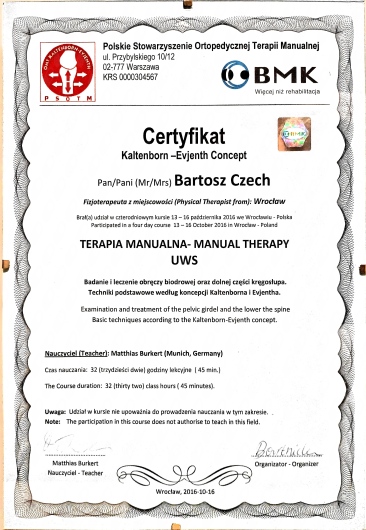 - Ortopedyczna Terapia Manualna według koncepcji Kaltenborna i Evjentha