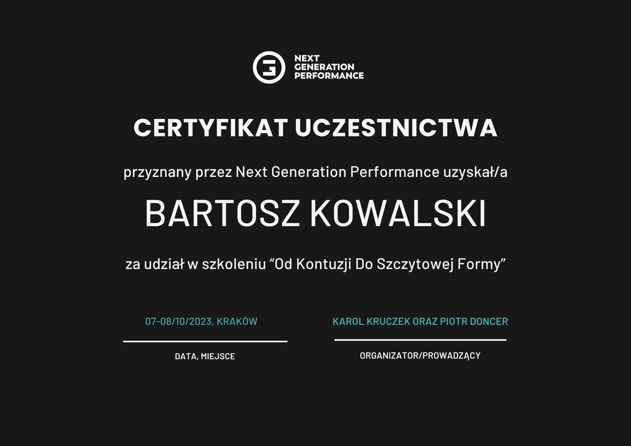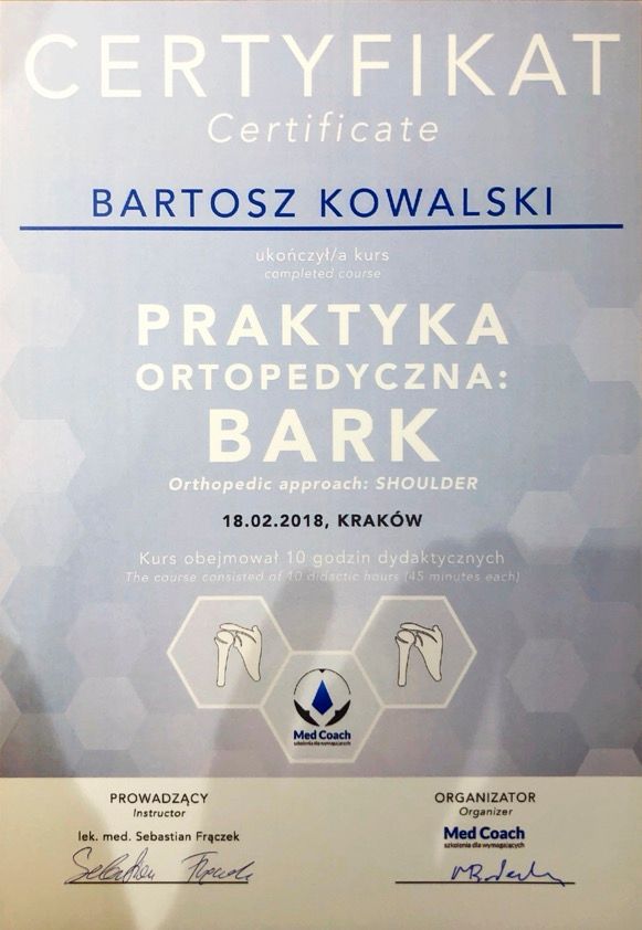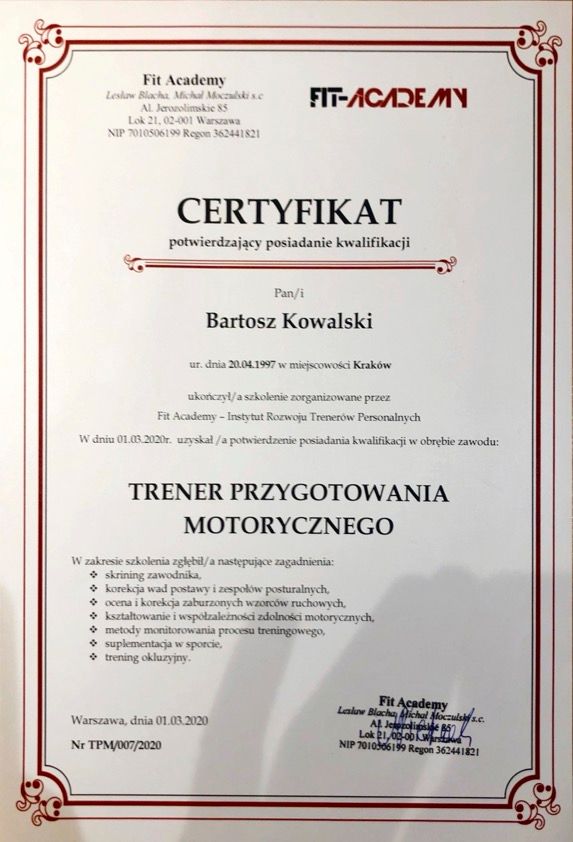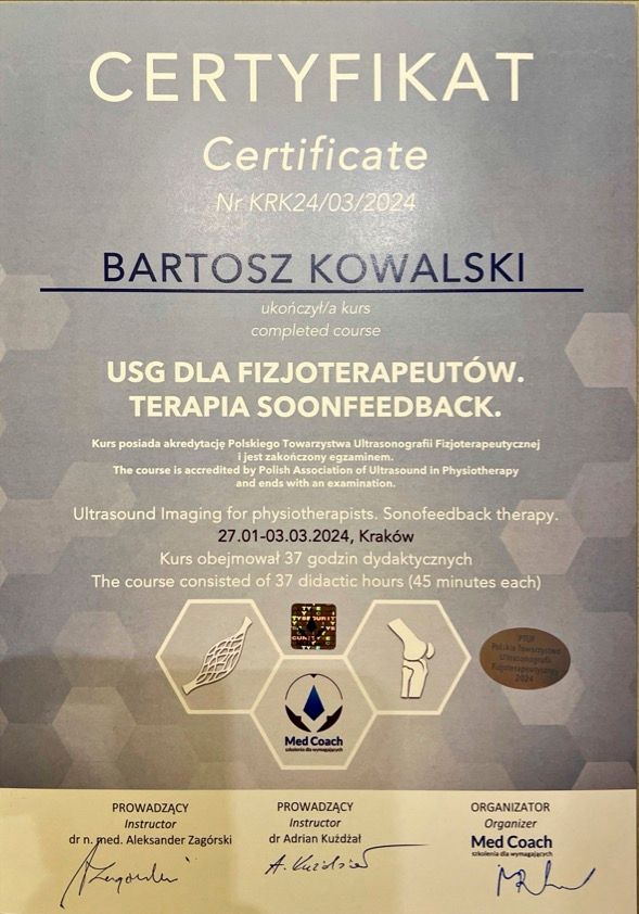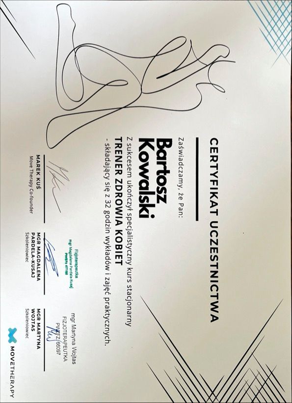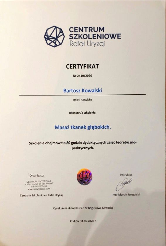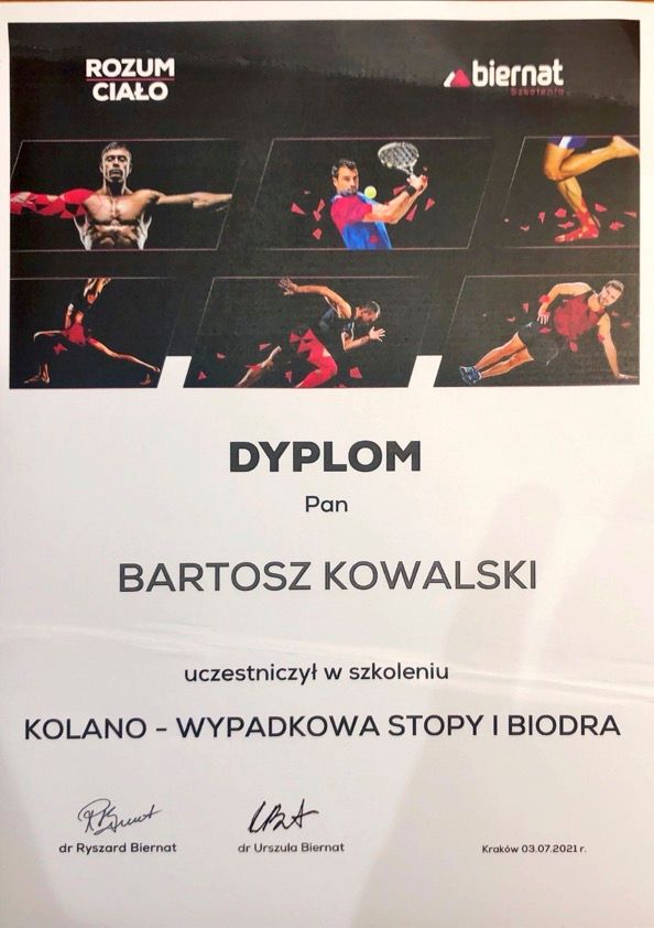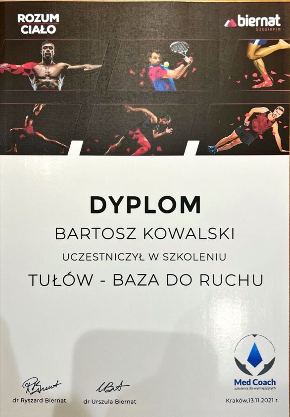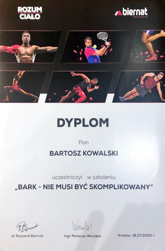 Bartosz to świetny specjalista – pomógł mi wrócić do formy po kontuzji barku i kolana. Pełen profesjonalizm, zaangażowanie i bardzo indywidualne podejście. Zdecydowanie polecam!
