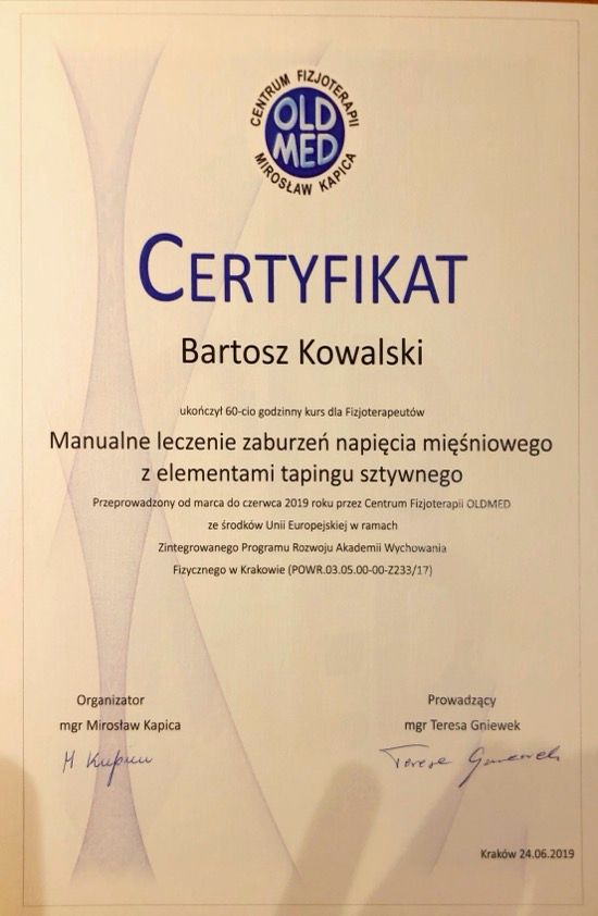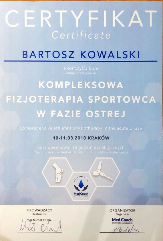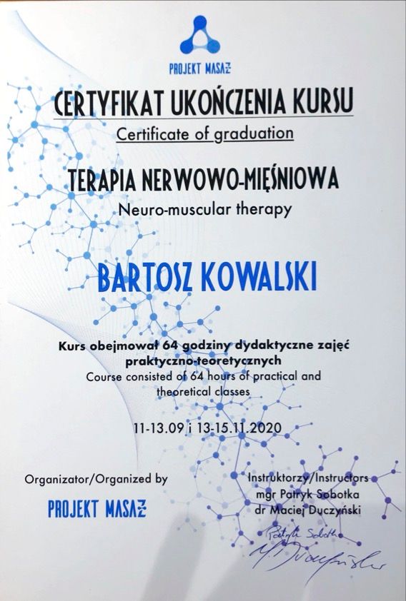 Już w trakcie studiów zacząłem zdobywać doświadczenie zawodowe, dzięki pracy w prywatnych gabinetach fizjoterapeutycznych, studiach treningowych oraz współpracując z damskim klubem piłkarskim na poziomie ekstraligi.