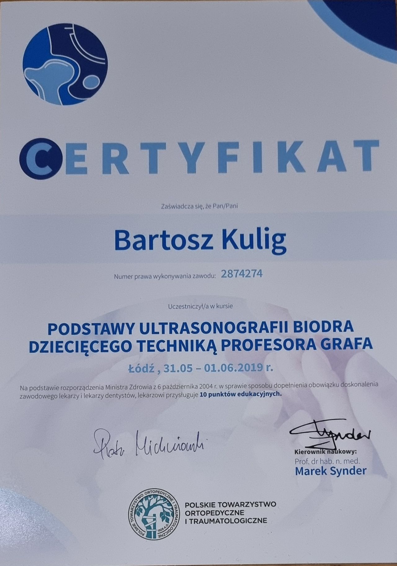 Jaki jest zakres porad oferowanych przez Bartosz Kulig?Bartosz Kulig to ortopeda dziecięcy, ortopeda. Na podstawie swojego doświadczenia i wykształcenia Bartosz Kulig oferuje usługi takie jak: konsultacja ortopedyczna, USG stawów biodrowych niemowląt, konsultacja ortopedyczna dzieci, iniekcja pod kontrolą USG, USG stawów biodrowych, konsultacja ortopedyczna dzieci + USG.