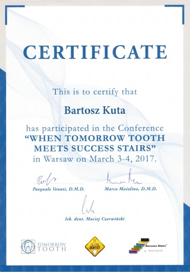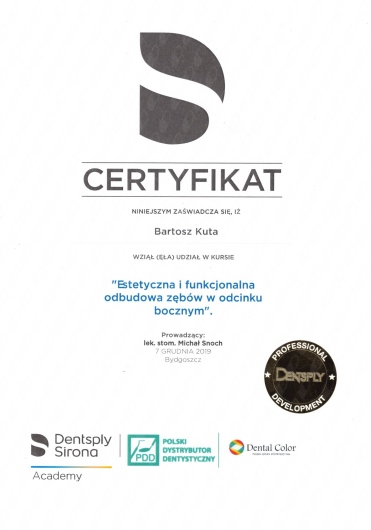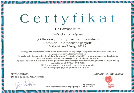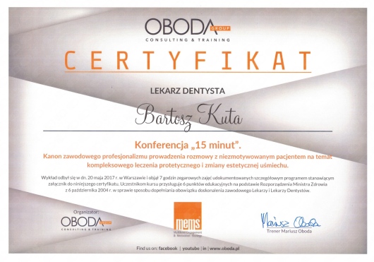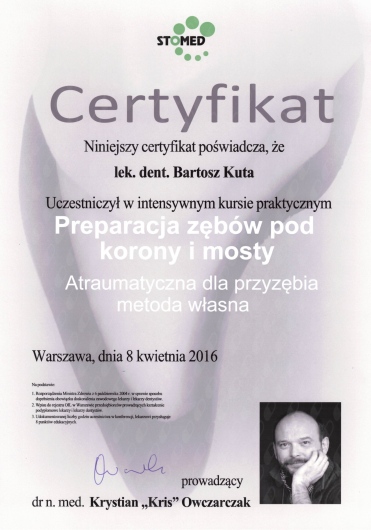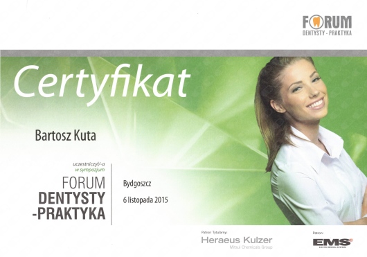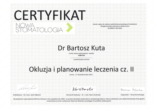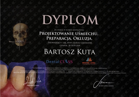 Zdecydowanie polecam leczenie u doktora Bartosza Kuty! Po moich wcześniejszych złych doświadczeniach u innego dentysty, odczarował moją niechęć do wizyt stomatologicznych. Generalnie jest to dla mnie najtrudniejsza z wizyt lekarskich, ale doktor jest bardzo sympatyczny i spokojny. Wykonuje swoją pracę bardzo dokładnie. Wszystko wyjaśnia, dzięki czemu czuję się spokojniejsza. Z całą rodziną jeździmy od kilku lat do Pana Doktora. Mogę polecić również jako lekarza dla dzieci. Ma super podejście. Córka była na swojej pierwszej wizycie w wieku 1,5 roku i mimo, że się obawiała to Pan Doktor dał sobie czas i spokojnie jej wszystko pokazał i opowiedział i pozwoliła zbadać swoje ząbki. Bardzo polecam!