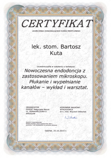 Polecam Pana Doktora serdecznie. Jestem bardzo zadowolona z jakosci uslugi, podejscia do pacjenta, wyrozumialosci i fachowosci. Mila atmosfera i sprzęt wysokiej jakosci. Pan Bartosz bardzo kontaktowy, uprzejmy i profesjonalny. Podczas wizyty czulam sie zaopiekowana.