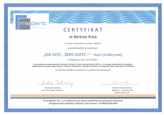 Bartosz Kuta: co mówią pacjenci?31 osób dodało swoją opinię. Bartosz Kuta ma średnią ocen 5 (na 5 gwiazdek).