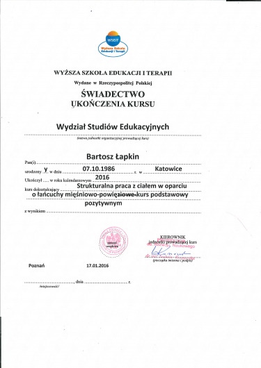 Jaki jest zakres porad oferowanych przez Bartosz Łapkin?Bartosz Łapkin to fizjoterapeuta. Na podstawie swojego doświadczenia i wykształcenia Bartosz Łapkin oferuje usługi takie jak: konsultacja fizjoterapeutyczna, Terapia manualna, prądy interferencyjne, Fala uderzeniowa, kinezyterapia, elektroterapia, krioterapia, masaż częściowy, masaż klasyczny, masaż limfatyczny.