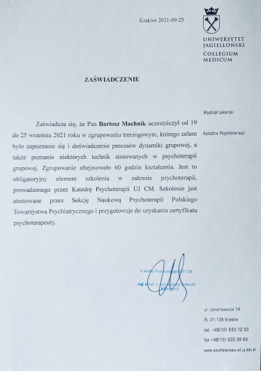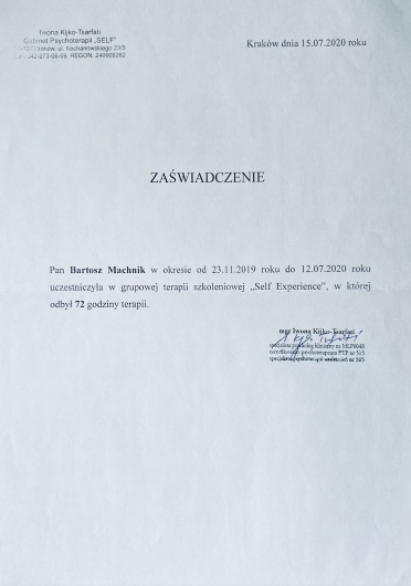 Każdemu polecam spotkania z Panem Bartoszem. Jest empatycznym psychoterapeutą, który cechuje się profesjonalizmem i zaangażowaniem. Poczułam się zrozumiana i akceptowana. Bardzo polecam.