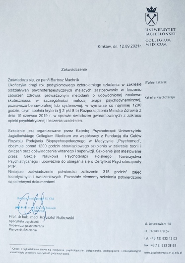 Gdzie Bartosz Machnik ma swój gabinet?Bartosz Machnik przyjmuje pod adresem: