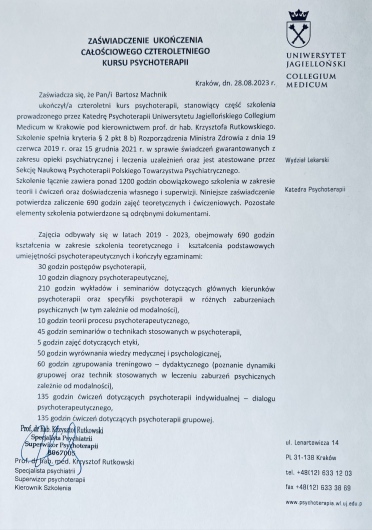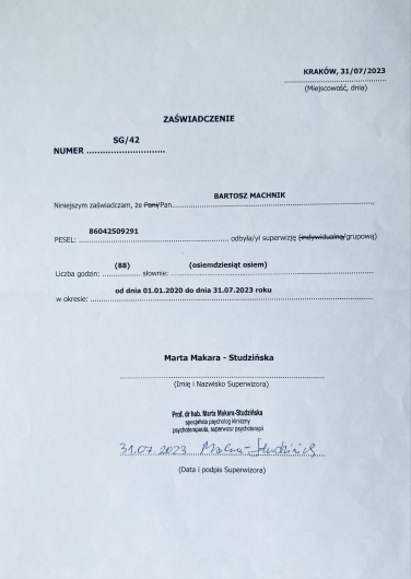 Z ogromną przyjemnością polecam Pana Bartosza jako psychoterapeutę. Moje doświadczenie z nim były niezwykle pozytywne i przynoszące korzyści. Pan Bartosz emanuje empatią i zrozumieniem, tworząc przy tym bezpieczną przestrzeń do otwartej rozmowy i eksploracji trudnych tematów.