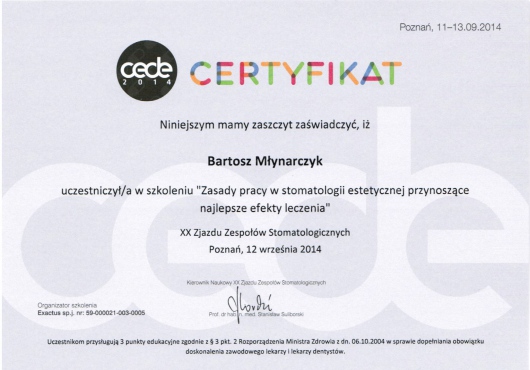 „Zasady pracy w stomatologii estetycznej przynoszące najlepsze efekty” XX Zjazd Zespołów Stomatologiczych 13 września 2014