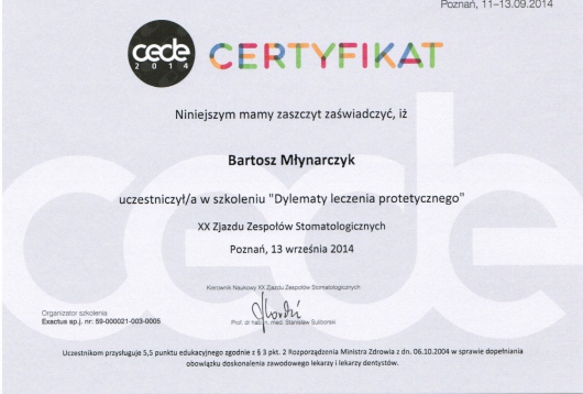 „Dylematy leczenia protetycznego” XX Zjazd Zespołów Stomatologiczych 13 września 2014