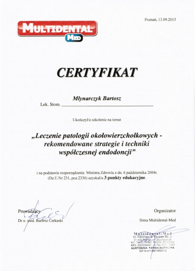 „Leczenie patologii około wierzchołkowych - rekomendowane strategie i techniki współczesnej endodoncji”, Poznań 13 września 2013