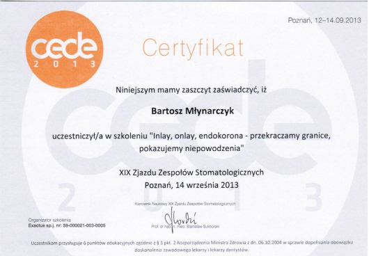 „Inaly, Onlay, Endokorona” - przekraczamy granice, pokazujemy niepowodzenia, Poznań 13 września 2013