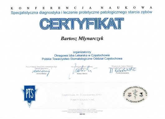 „Specjalistyczna diagnostyka i leczenia protetyczne patologicznego starcia zębów” Częstochowa 20.10.2010