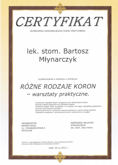 „Różne rodzaje koron- warsztaty praktyczne”, Łódź 24.11.2012